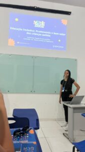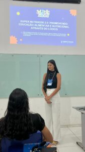 Nesta edição, destacamos a presença das alunas Keiliane Rodrigues, que apresentou seu projeto intitulado: “Super nutrikids 2.0: promovendo educação alimentar e nutricional através do lúdico”, sob orientação da professora Diandra Noleto. E Raquel Ferreira, que participou com trabalho intitulado: “Educação inclusiva: promovendo o bem-estar das crianças autistas”, orientado pelo professor Marcos Antonio do Nascimento.